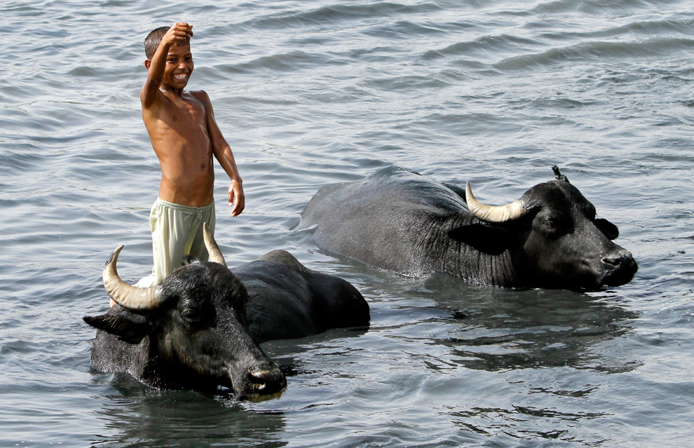 37. 8-летний Али Ахмед плывет с коровами в реке Тигр в Багдаде 14 июля. Животных ежедневно купают, чтобы уберечь от болезней и жары. (AP Photo/Hadi Mizban)