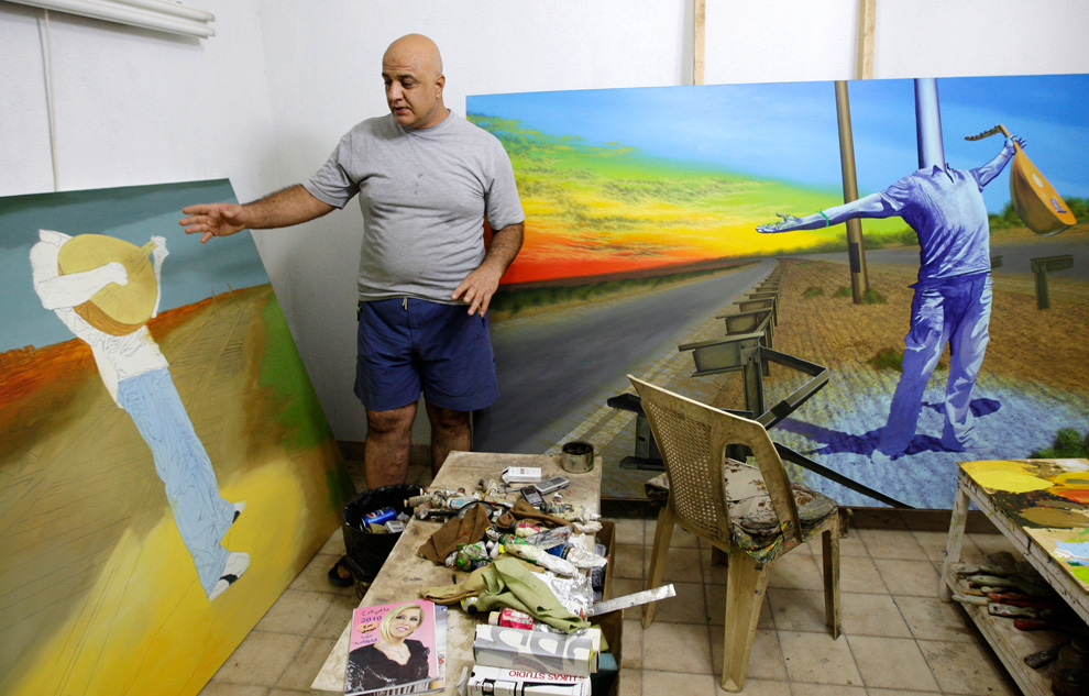 36. Иракский художник Муайяд Мухсин демонстрирует свои картины во время интервью с представителями ИА Associated Press в своей студии в Багдаде 9 июня. Иракские художники с помощью своих работ пытаются передать те массовые волнения, которые продолжаются в стране со времен падения режима Хуссейна. Их картины выражают гнев по поводу страданий и травм, нанесенных их стране, а также по поводу ее неопределенного будущего. (AP Photo/Hadi Mizban)