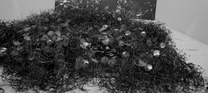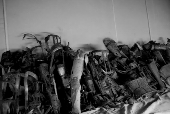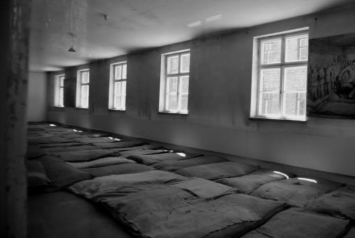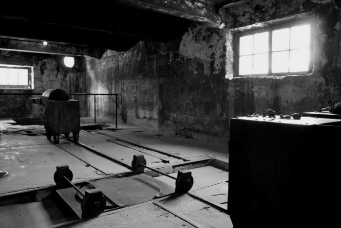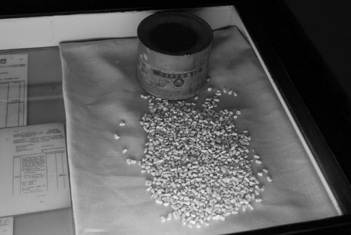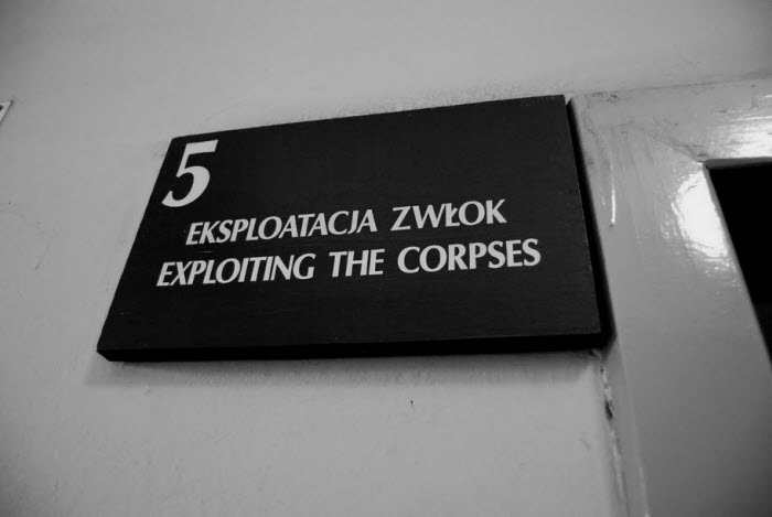 Внутри корпусов сделаны витрины, в которых хранится вся та мировая скорбь, в виде банок от тушёнки Циклона Б