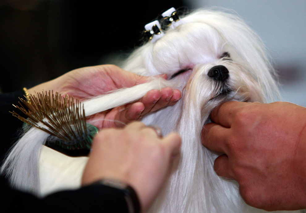 16. 20-месячная мальтийская болонка по кличке Мята, похоже, заснула, пока ее готовят к конкурсу на Азиатской выставке собак в Бангкоке 21 октября. Сотни собак приняли участие в четырехдневном шоу, которое закончилось в воскресенье 24 октября. (AP Photo/Apichart Weerawong)