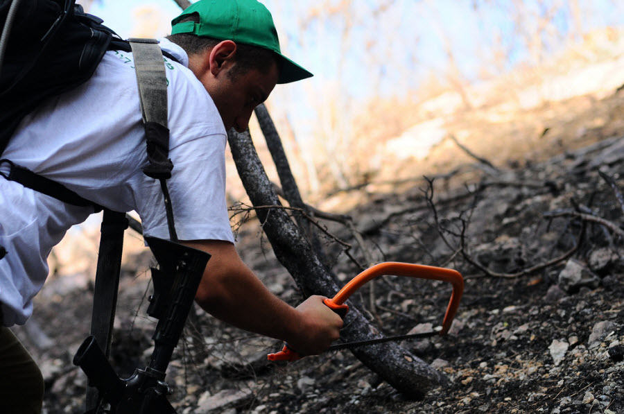 Тысяча энергичных пехотинцев из бригады НАХАЛ взялась за расчистку туристических троп. Задача эта, конечно, не боевая, но близкая к той обстановке, в которой часто приходится действовать израильской царице полей. Солдаты понимают, что это не просто поездка, а задание национальной важности.
