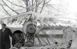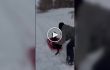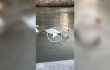 Отец-лебедь прокладывает путь через лед для своей семьи