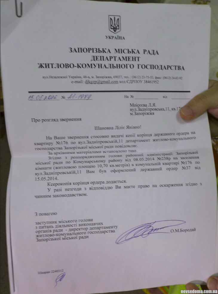 Lily's parents were deprived of parental rights when the girl was 11 years old. She studied at a boarding school in Molochansk. Then I went to study at the Melitopol vocational school to become a seamstress. After graduation, in 2014, Lilya, as an orphan, was issued a warrant by the state for a room in a three-room apartment on Zadneprovskaya Street, 11, in the Khortitsky district of Zaporozhye.