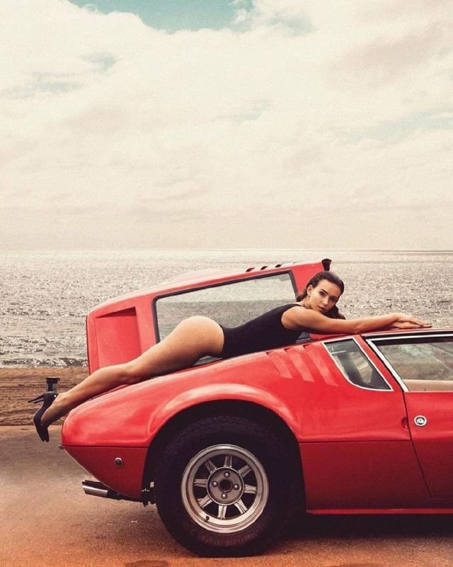 The girl stars in an advertisement for a new racing car. USA. 1988