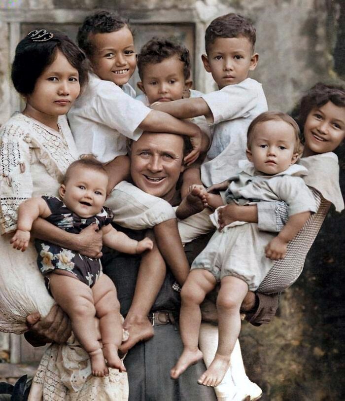 A Filipino-American family poses for a family portrait. Philippines, 1912