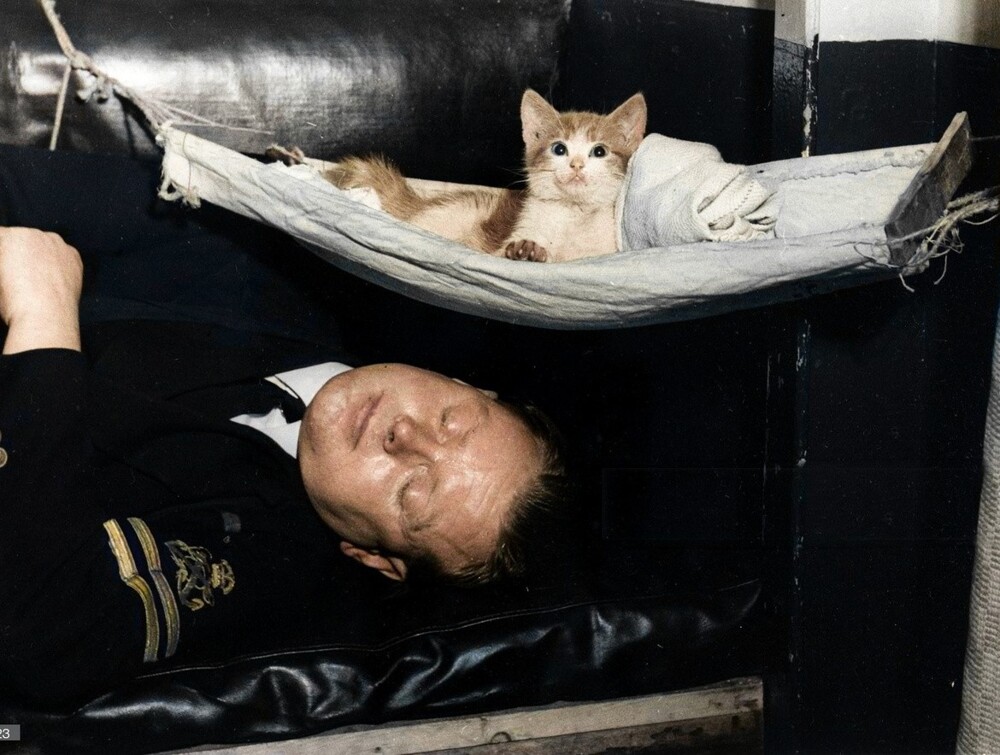 Cats and cats in the fleet – this is a common occurrence. Moreover, both in peacetime and in wartime. Fluffy purrs become favorites of the entire crew and mascots of the ships on which they “serve.”