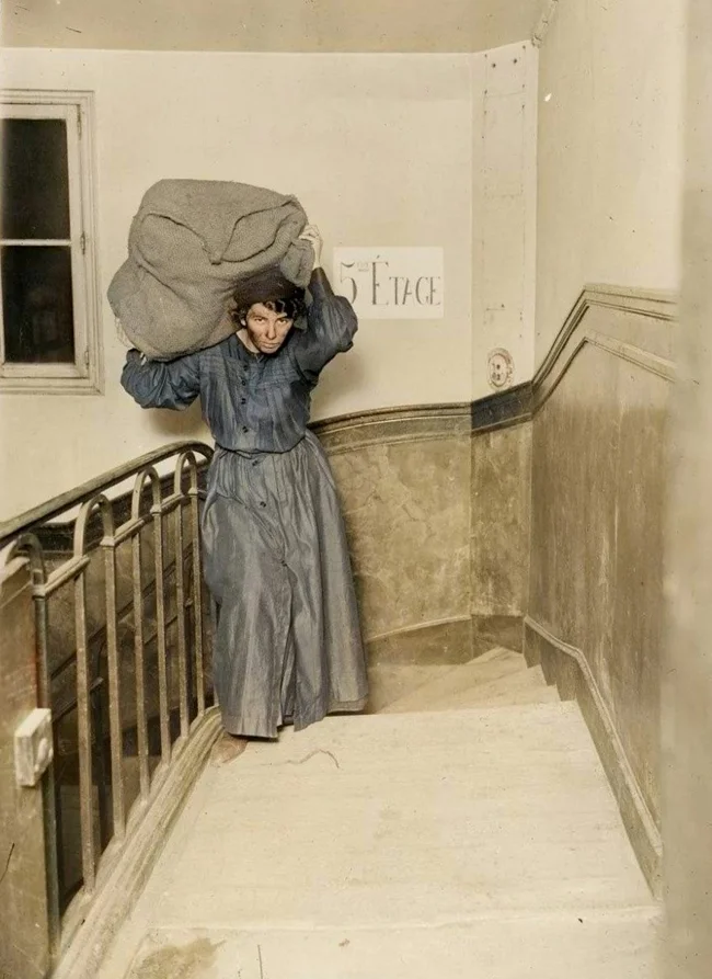 During the First World War, girls and women did men's work: they put out fires, carried coal, and made shells.