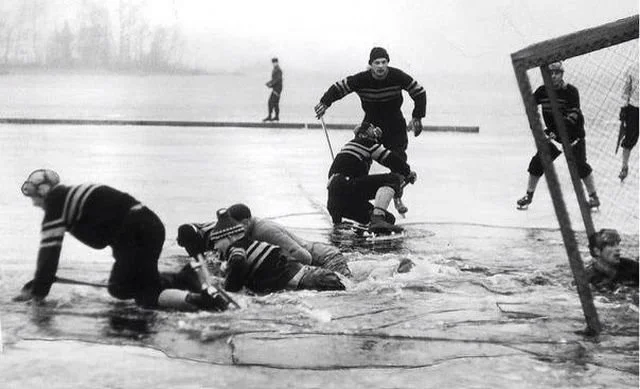 At the semi-final of the Swedish hockey championship in 1959, the players fell through the ice.