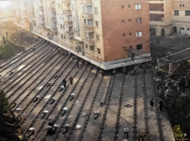 15. Moving a 7,600-ton residential building to create a boulevard in Alba Iulia, Romania, 1987.