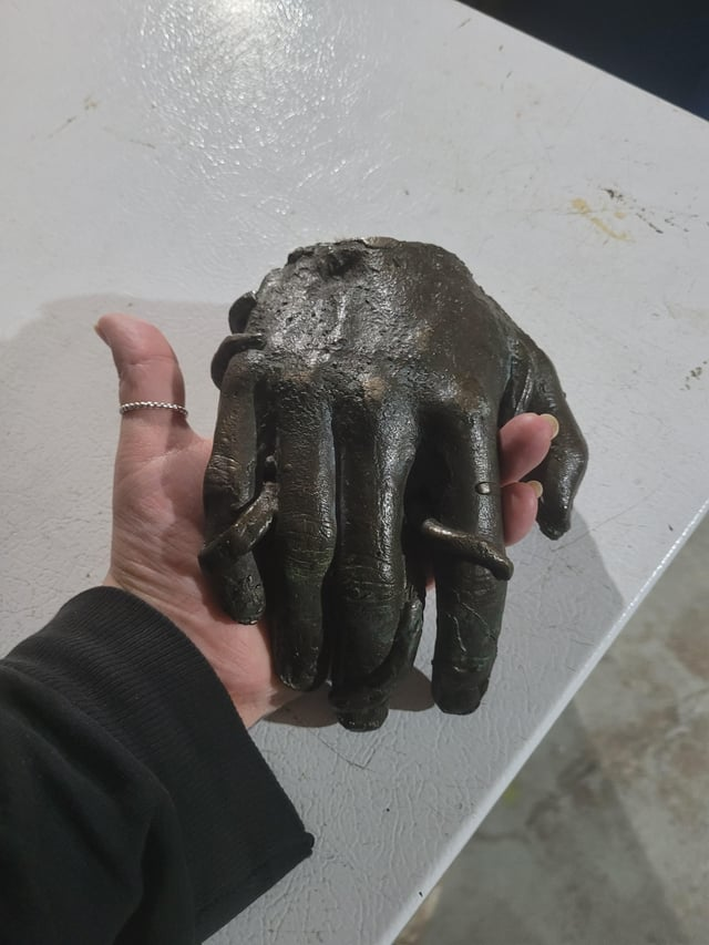 Found a heavy bronze hand in the wall of the house. What could it be?