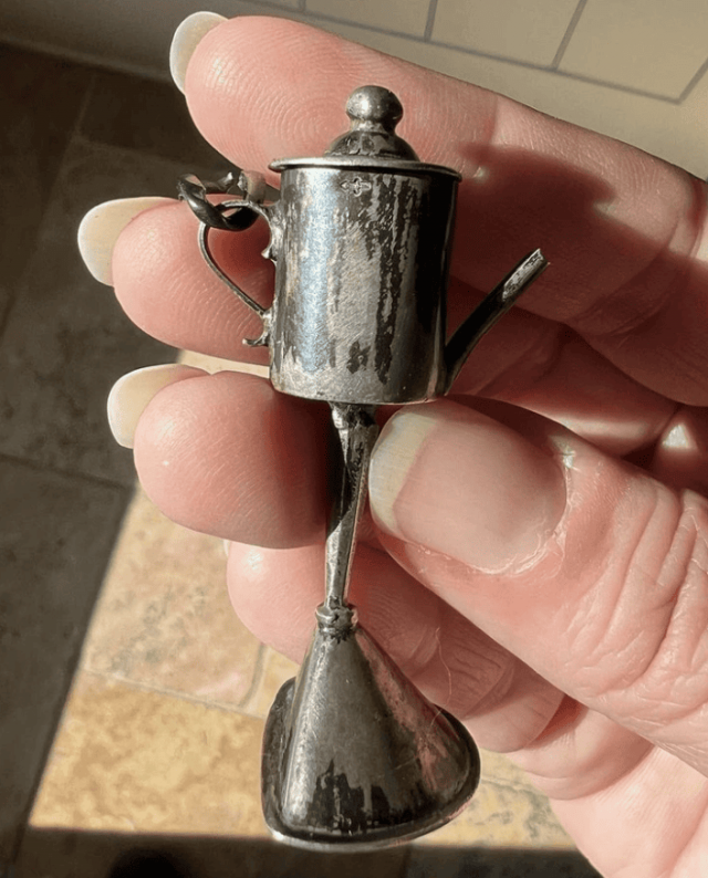 Answer: It looks like a charm,which people hide in the walls of houses to attract good luck.