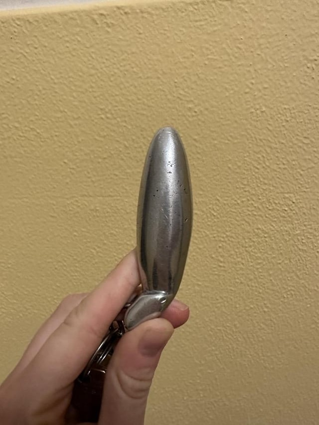 A strange heavy metal oval rounded keychain. Does not move, does not glow, does not make noise