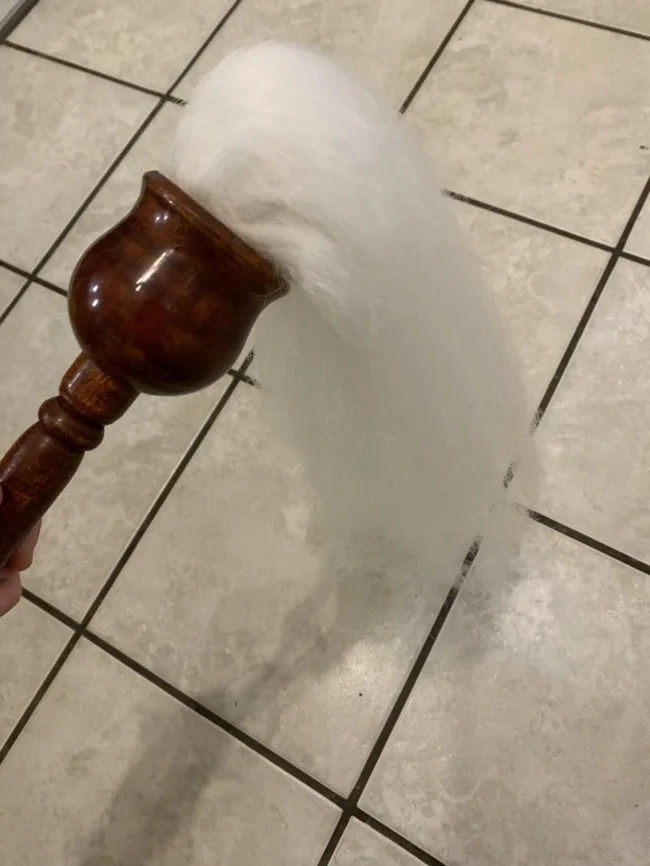 7. Wooden handle, about thirty centimeters with white artificial hair