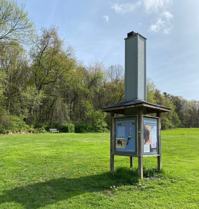 These chimney-imitating towers are installed by the Pennsylvania Conservancy. They are intended to preserve the population of swifts (smoky needletails), which arrange nests in chimneys
