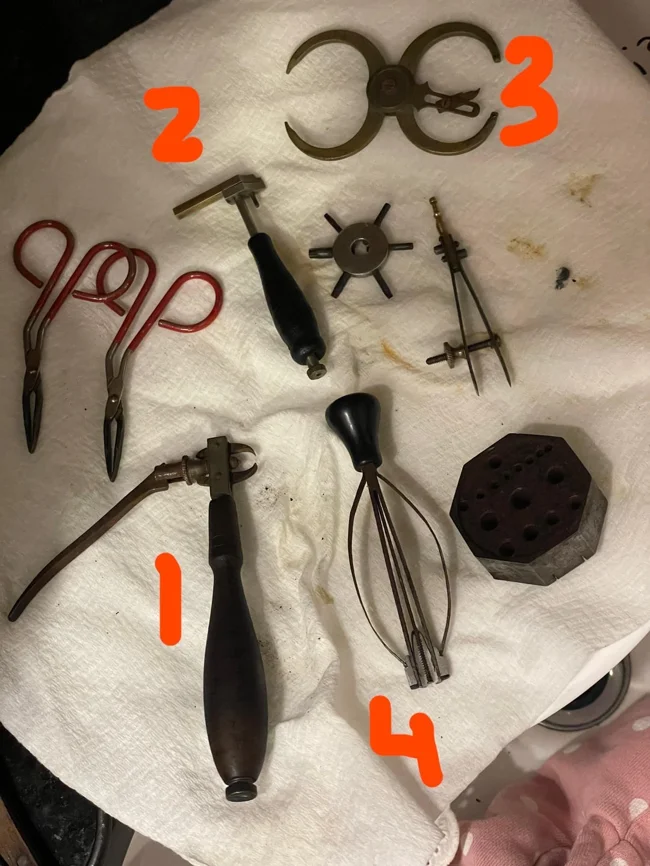 8. Medium size, with a wooden handle and a curved metal tip, not very heavy. Got it for free at a thrift store