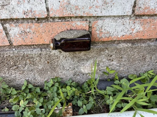 "What kind of bottles are cemented into the foundation of my house approximately every 3 meters?"