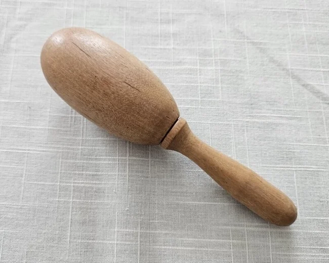 This is a darning egg. To make it easier to repair wool socks and other knitted clothing. It is held by the handle and applied to the desired place, and the other hand is used to darn.