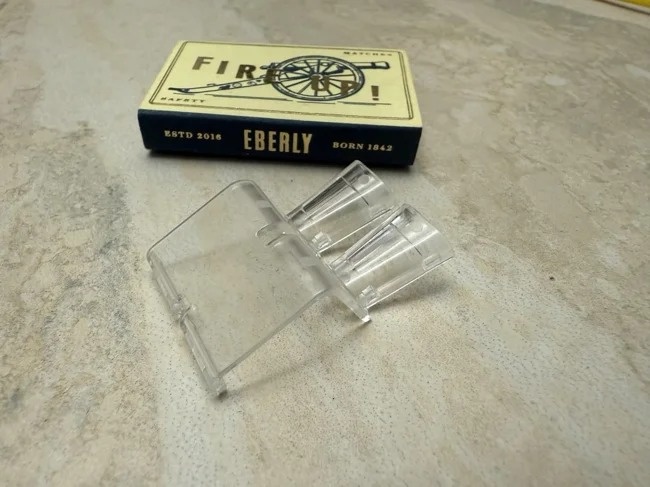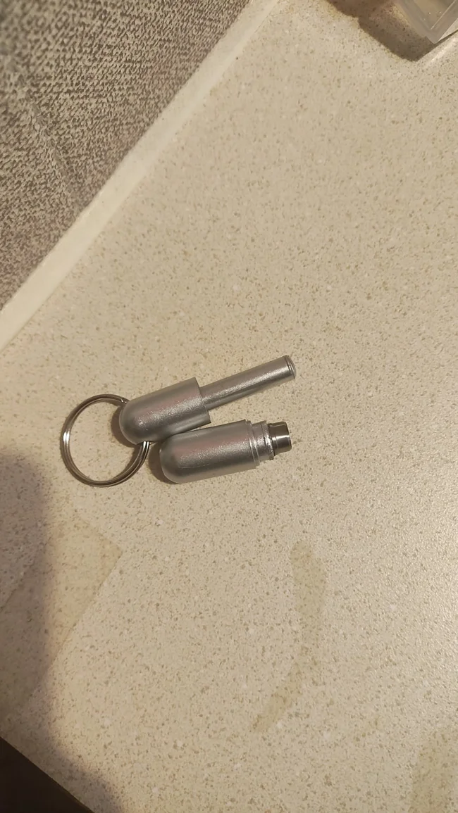 Cigar guillotine. One end is used to punch a hole in the cigar, and the rod is used to clean the guillotine itself.