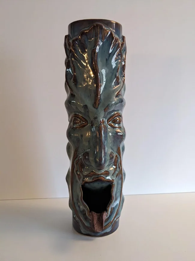 Incense holder, grotesque ceramic figurine.