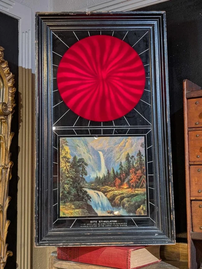 9. This was found in a vintage store, but the owner wasn't sure what it was. The red circle at the top had a light bulb that created the effect of movement