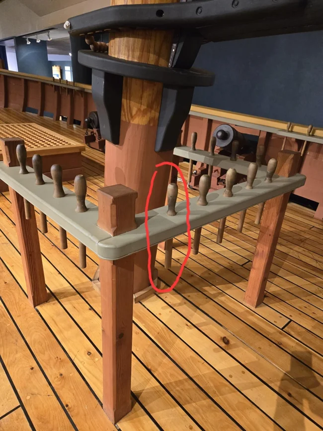 4. Wooden pegs with a handle on old sailing ships