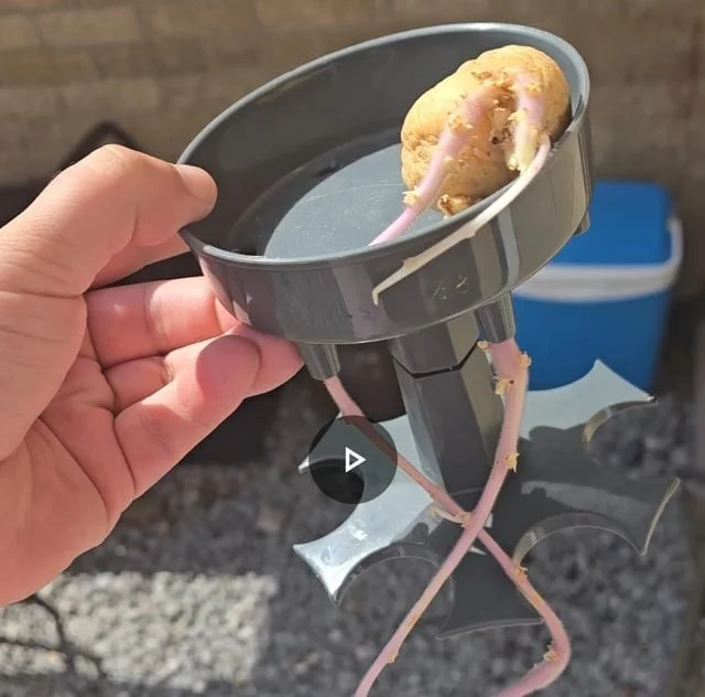 8. A lightweight plastic structure found in the far corner of a cupboard with a potato that accidentally fell in