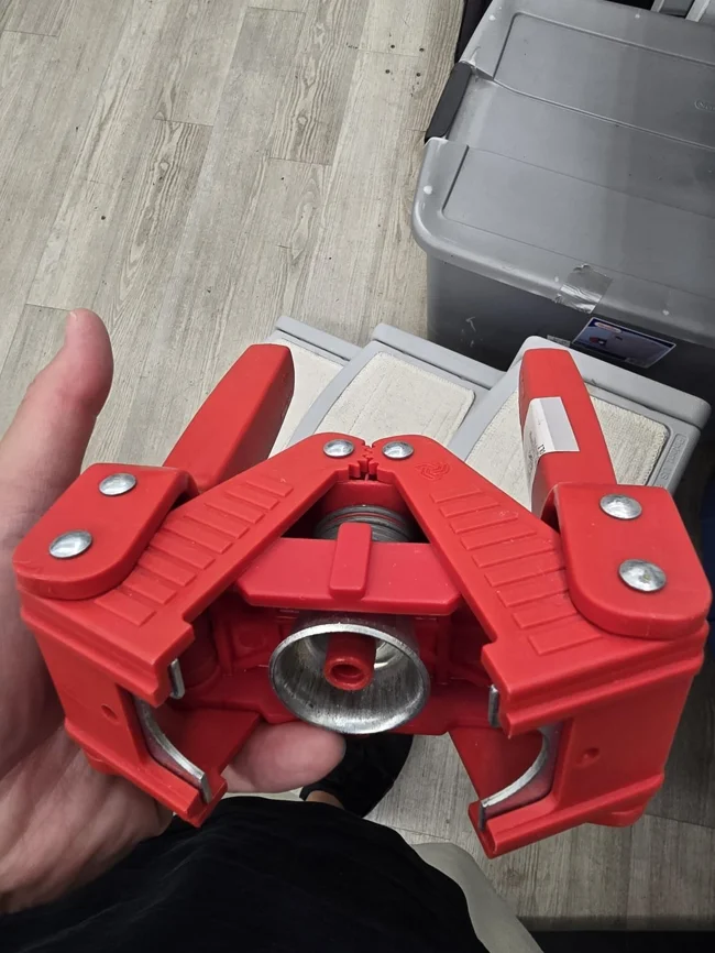 3. Red crimping tool weighing about a kilogram, made in Italy