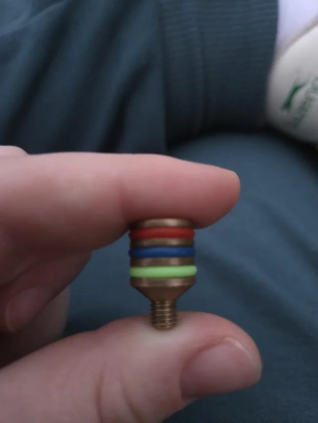 6. A small metal object with multi-colored rubber bands and a screw-in part, found in a school yard