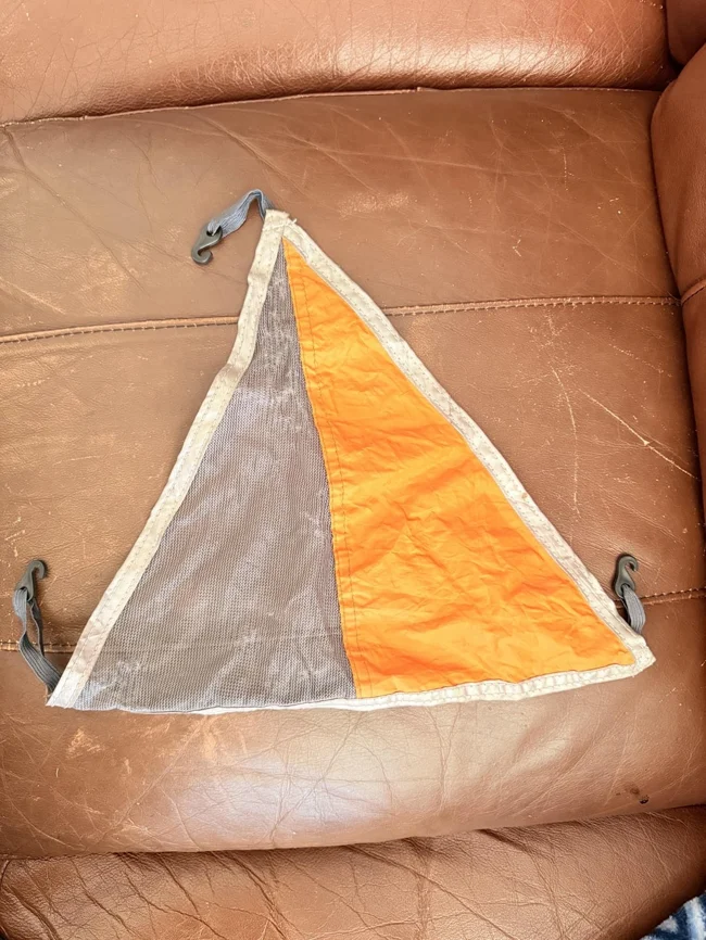 7. Textile triangle made of mesh and nylon with a side of about 2.5 centimeters and hooks