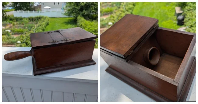 An old ballot box. Voting was carried out using balls of two colors - white and black, which participants lowered into the hole in the ballot box. When the process was completed, it was opened and counted.