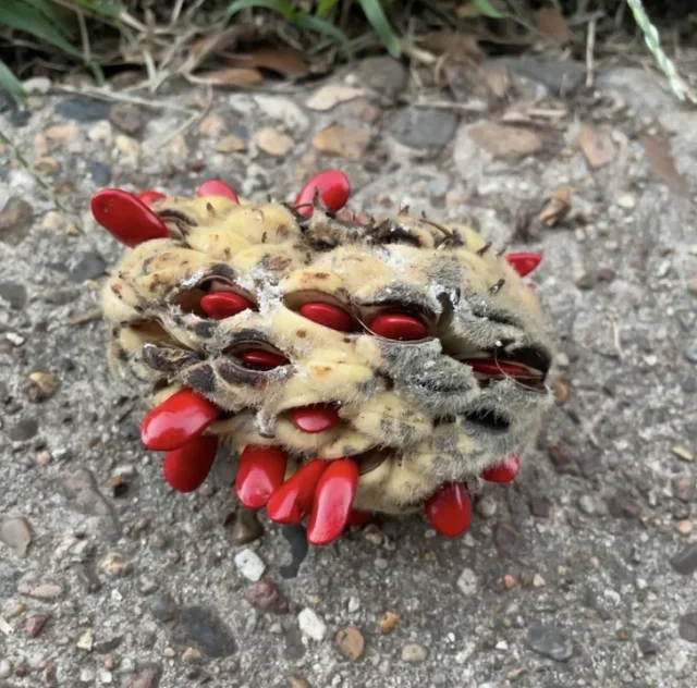 It looks like a ripe magnolia seed pod.