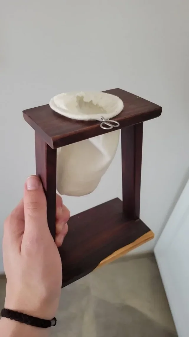 A chorreador is a coffee-making device used in Costa Rica in which hot water is passed through coffee grounds placed in a cloth filter mounted on a wooden stand and then dripped into a mug.