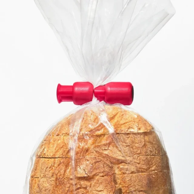 Reusable clip for a bag of bread. Oxo is a company that produces various kitchen utensils