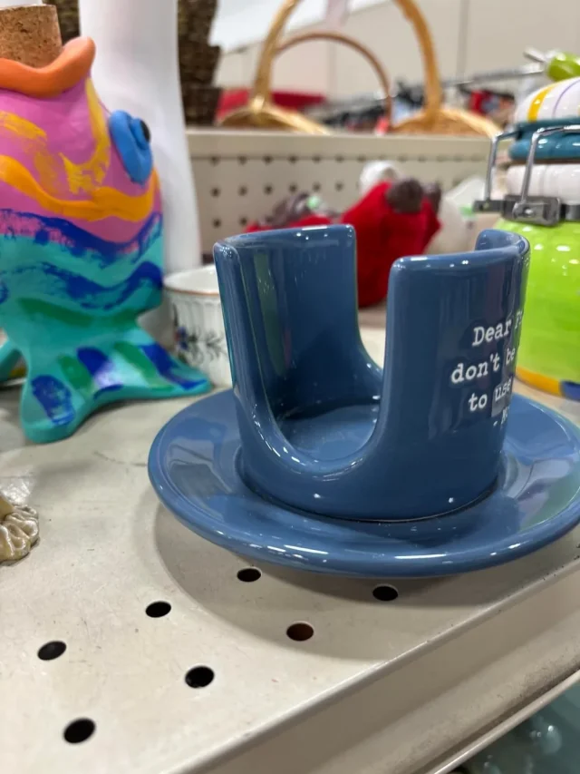 6. A ceramic trivet from a thrift store, about the size of a teacup.
