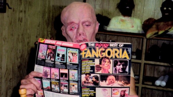 Jason Voorhees looks for himself in a horror magazine on the set of Friday the 13th - Part 3