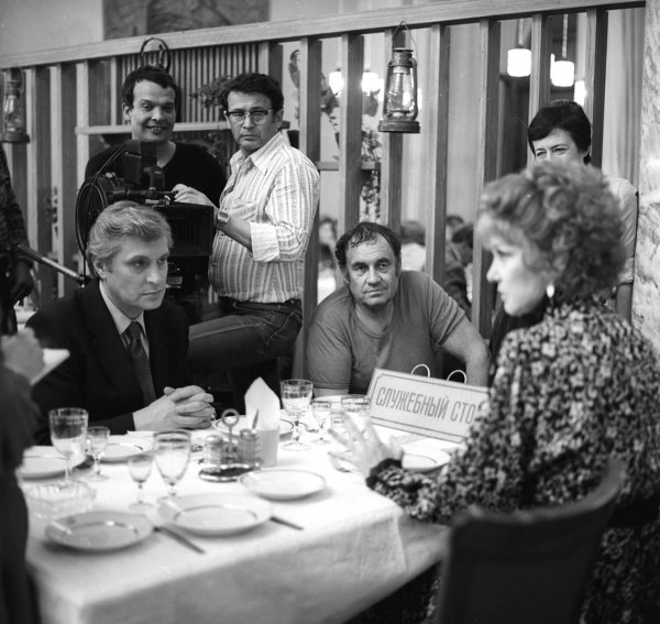 Oleg Basilashvili, Eldar Ryazanov and Lyudmila Gurchenko on the set of the film "Station for Two"