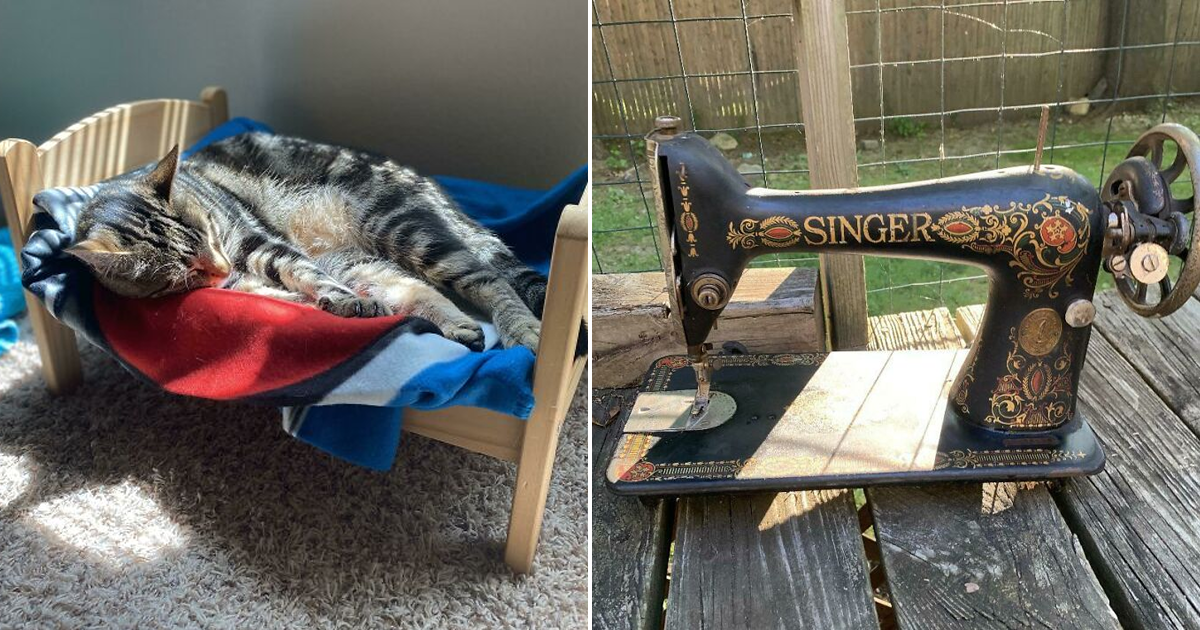 2. "The cutest roadside find: IKEA doll bed for my cat. He seems to be happy."