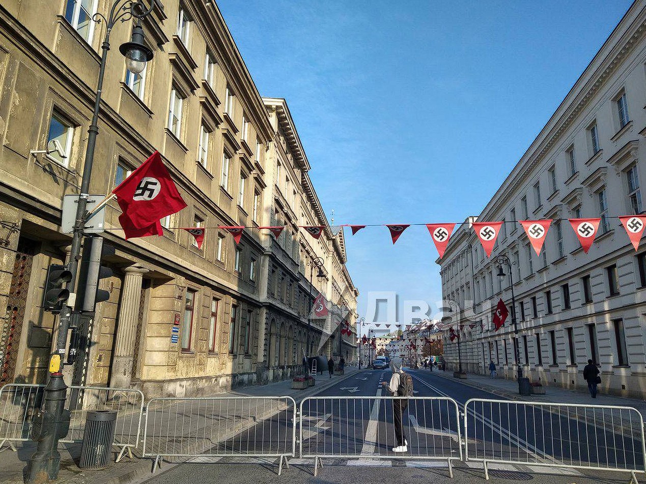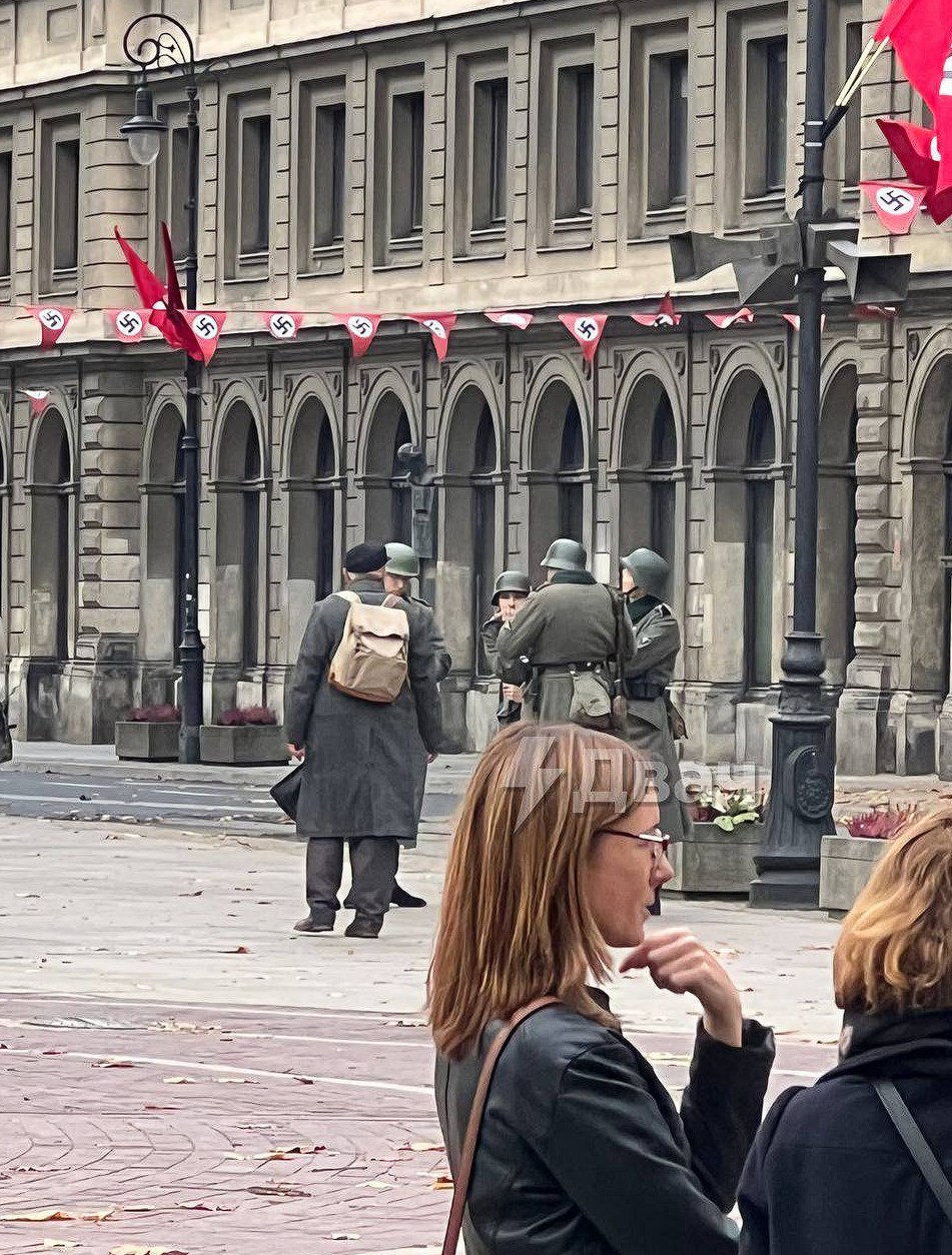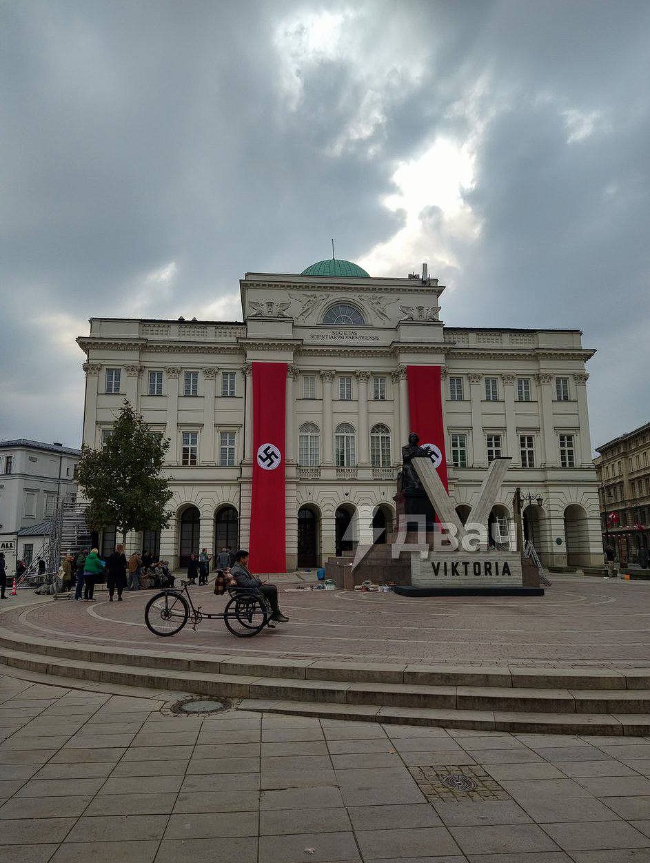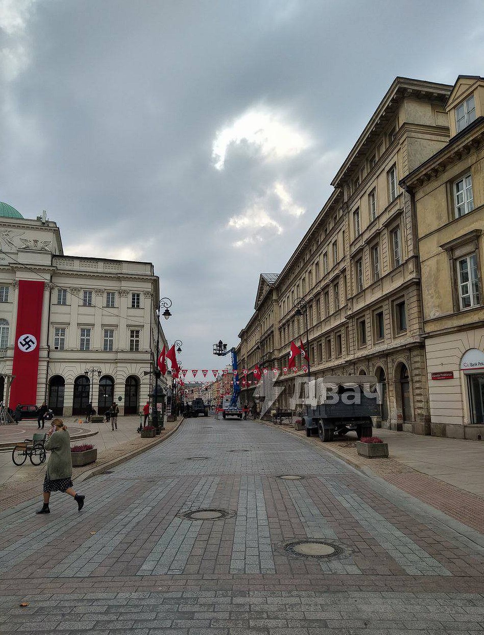 - A film about the Second World War is being shot in Warsaw. The letter "V" was placed in the center of the square