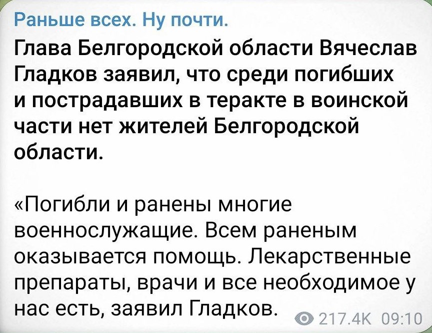 - Russia will fall apart. Why? Yes, because all the inhabitants of the regions have separate thinking. In the Belgorod region, mobiki staged a mass execution, and the head of the region comments that "among the dead and injured there are no residents of the region."