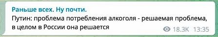 - Joke of the year: Putin said that the problem with alcohol in the Russian Federation is solvable. She dares