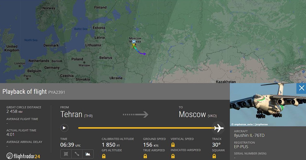 - Iran continues to drive cargo planes to the Russian Federation. On October 20, a cargo Boeing 747 (EP-SIH) of Saha Airlines flew to Moscow from Tehran, and on the 21st of the Il-76 (EP-PUS) of the Iranian Air Force.