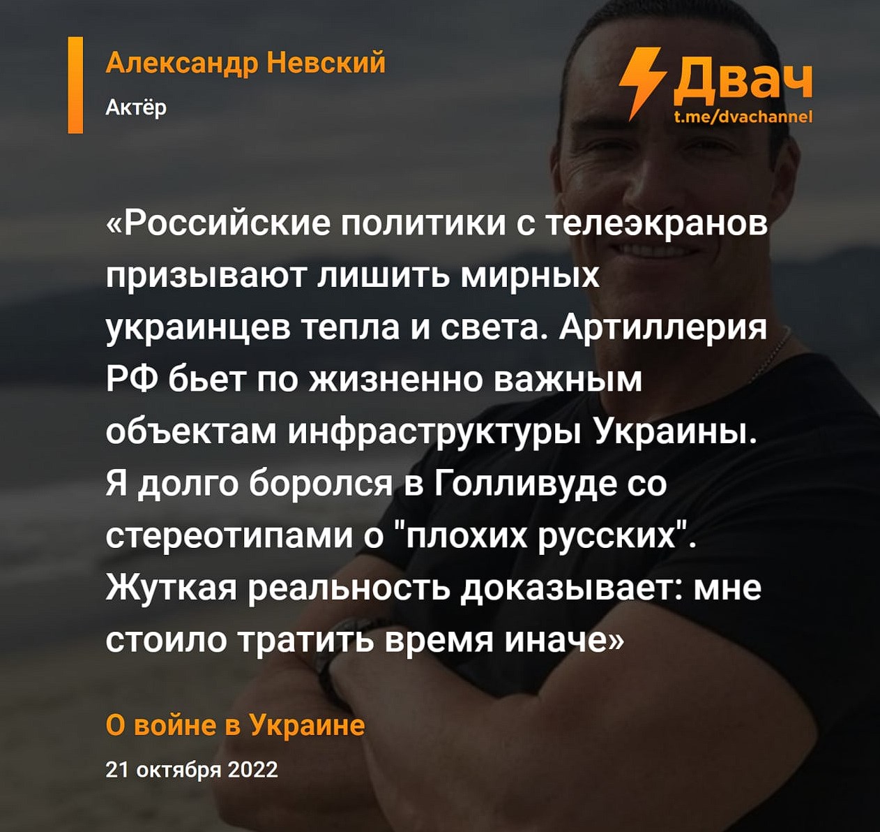 - “I have long struggled in Hollywood with stereotypes about “bad Russians”. The terrible reality proves that I should have wasted my time differently,” actor Alexander Nevsky.