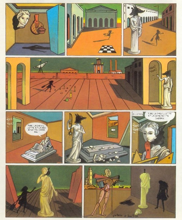 Even in the world of metaphysical painting by de Chirico, among the shadows and statues, there was a place for the Wolf and Riding Hood