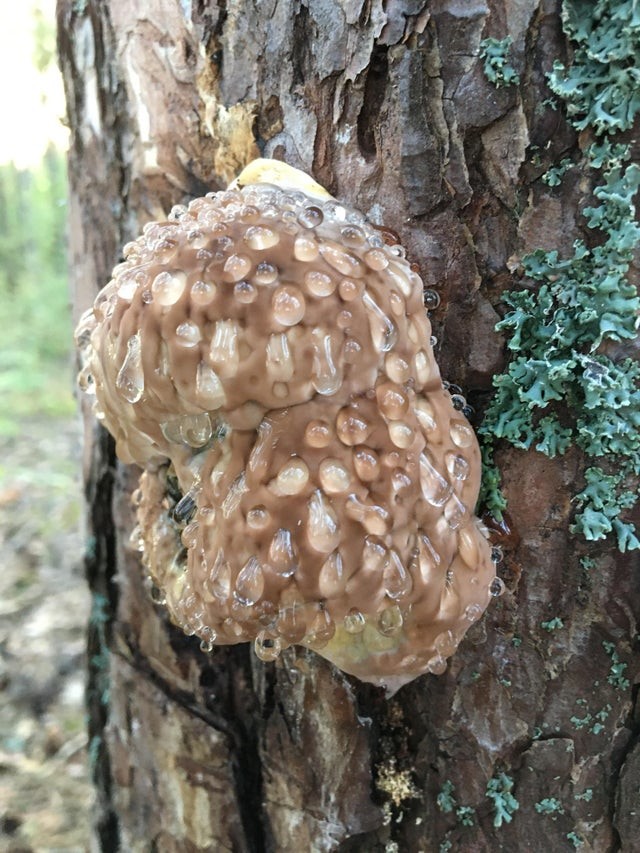 The tinder fungus confused the vacationers, because moisture flowed from it and it looked unusual