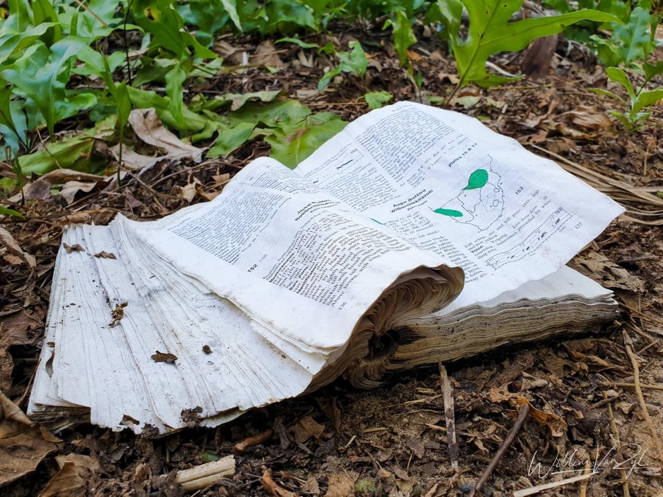 Finding books in the forest is also not the most typical story if there are no houses and camps nearby.