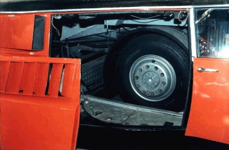 The latter was a rotary stand adapted for load wheel, equipped with a hydraulic drive, a protective fairing and measuring equipment. The stand was located in the middle of the car and had a special cutout through which the cargo wheel fell onto asphalt. With the help of a hydraulic device, the testers could simulate various tire operating conditions, whether it be speed, load or angle of rotation.