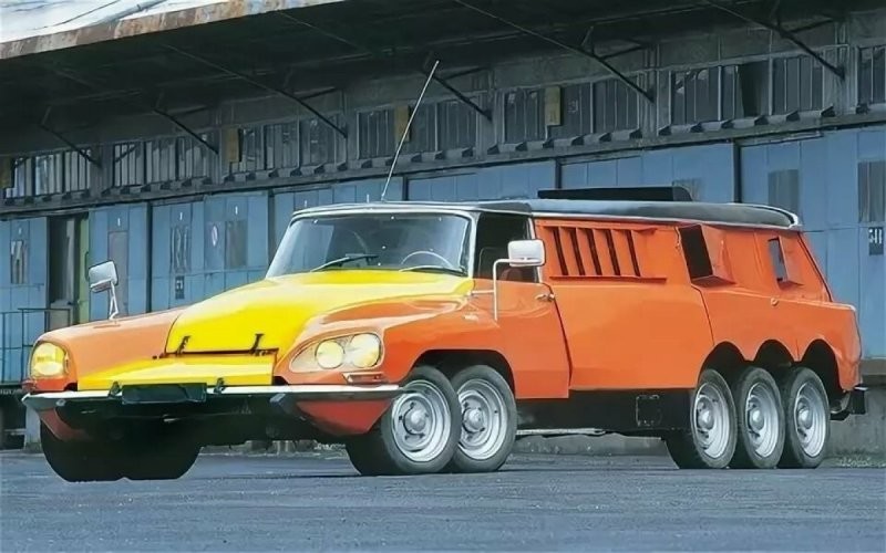 The car was a deeply redesigned variation Citroën DS Safari, whose body was lengthened to 7.2 m and widened to 2.45 m. The chassis included five axles: two driven front and three leading rear. Like the base Citroën DS, the suspension was hydropneumatic. The rear axles were borrowed from the Peugeot 504, the wheels from minibus Citroën H Van.