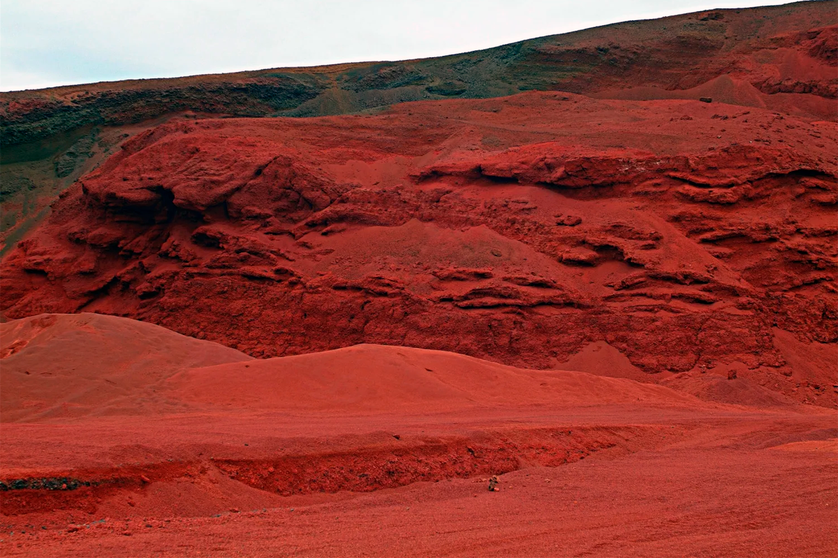 The earth really has this color in these regions everywhere - both in open places and under grass, trees.