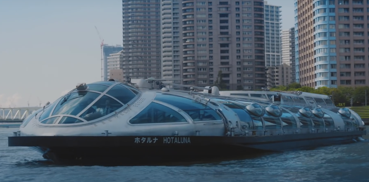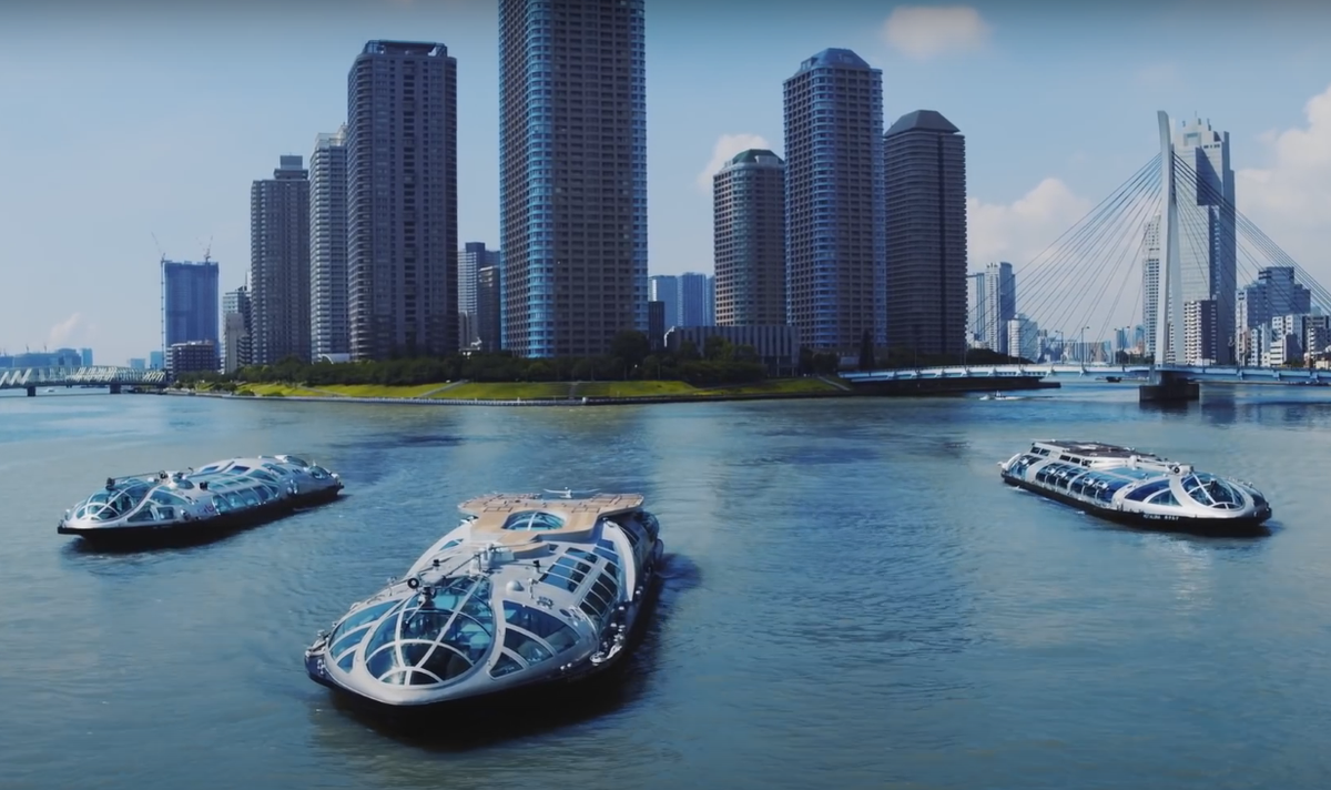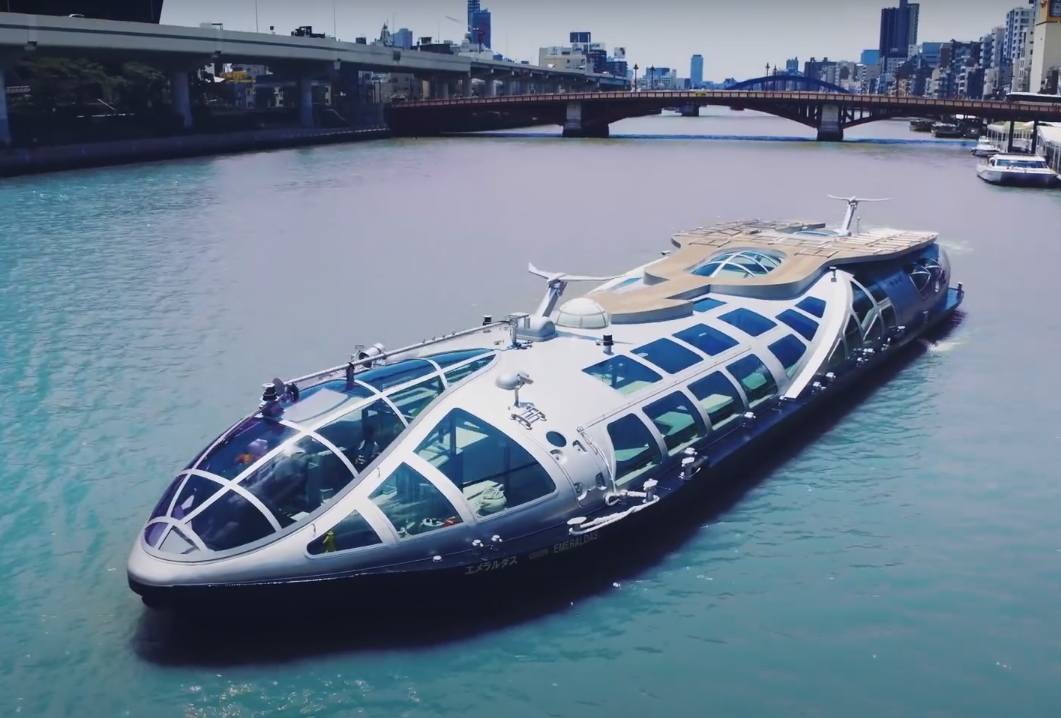 There are quite a few tourist destinations in Japan, and one of the most popular is the water route between the city of Asakusa and the artificial the island of Odaibo. So, boats run back and forth on it. However their design is very different from the river buses we are used to. them here three types, and all three were designed and built over 15 years ago.