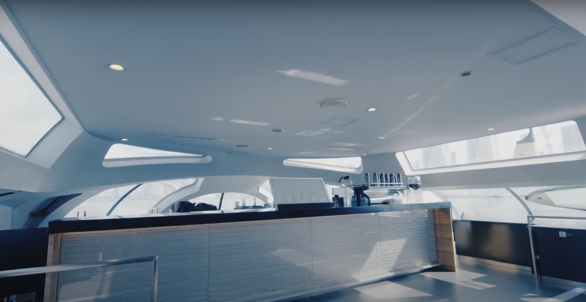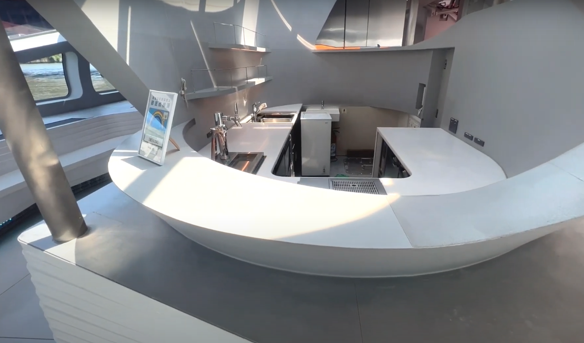 Well, of course, there is a buffet and bar counter in the aft part, because tourists are always drinking or eating something.